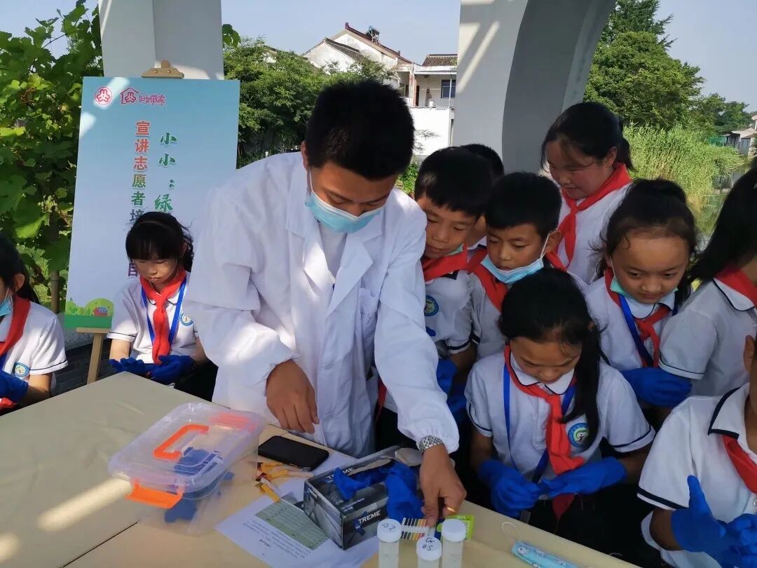 为助力我市生态文明建设以及新时代文明实践活动开展,环科园妇联小小“绿喇叭”宣讲志愿者培训项目携手中信环境流域治理(江苏)有限公司、江苏中宜生态土研究院来到环科园(新街街道)陆平村开展“我为小河做体检”环保科普活动,15位来自潘汉年实验小学的小小“绿喇叭”志愿者参与了这次活动。